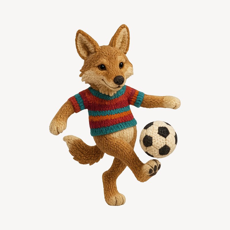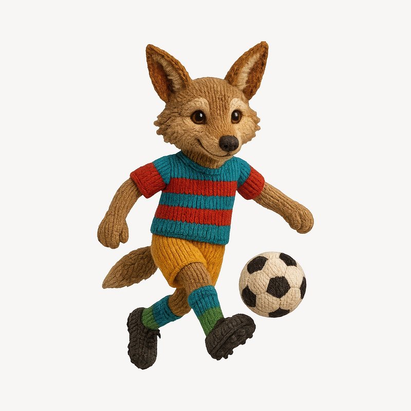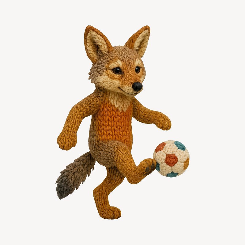 Knitted fox playing soccer. https://www.rawpixel.com/image/24531890/knitted-fox-playing-soccerView license