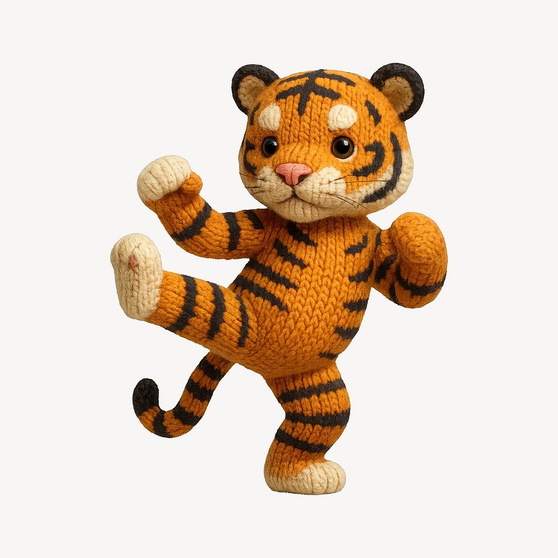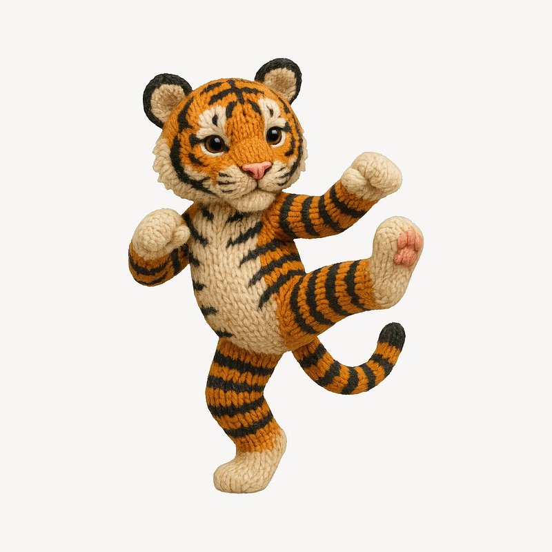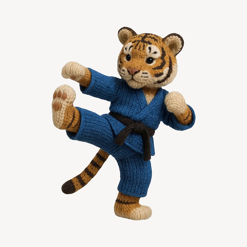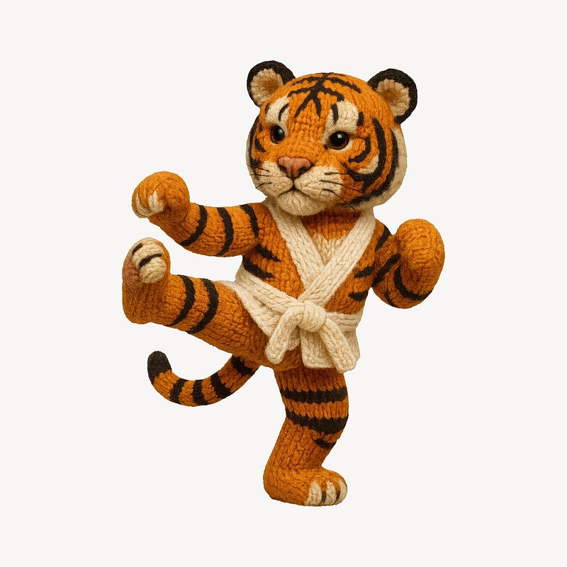 Cute knitted tiger practicing karate. https://www.rawpixel.com/image/24530107/cute-knitted-tiger-practicing-karateView license