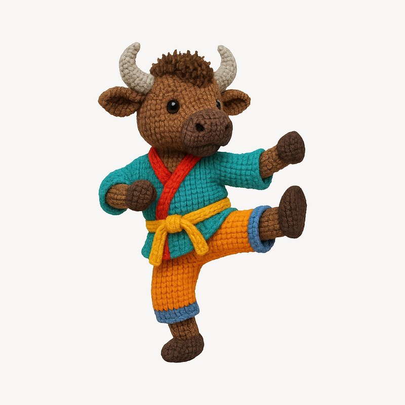 Crochet bull practicing martial arts. https://www.rawpixel.com/image/24530315/crochet-bull-practicing-martial-artsView license