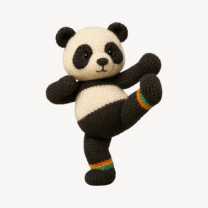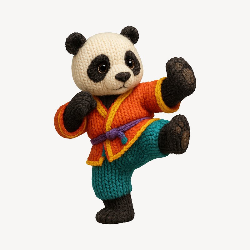 Knitted panda practicing martial arts. https://www.rawpixel.com/image/24658105/knitted-panda-practicing-martial-artsView license