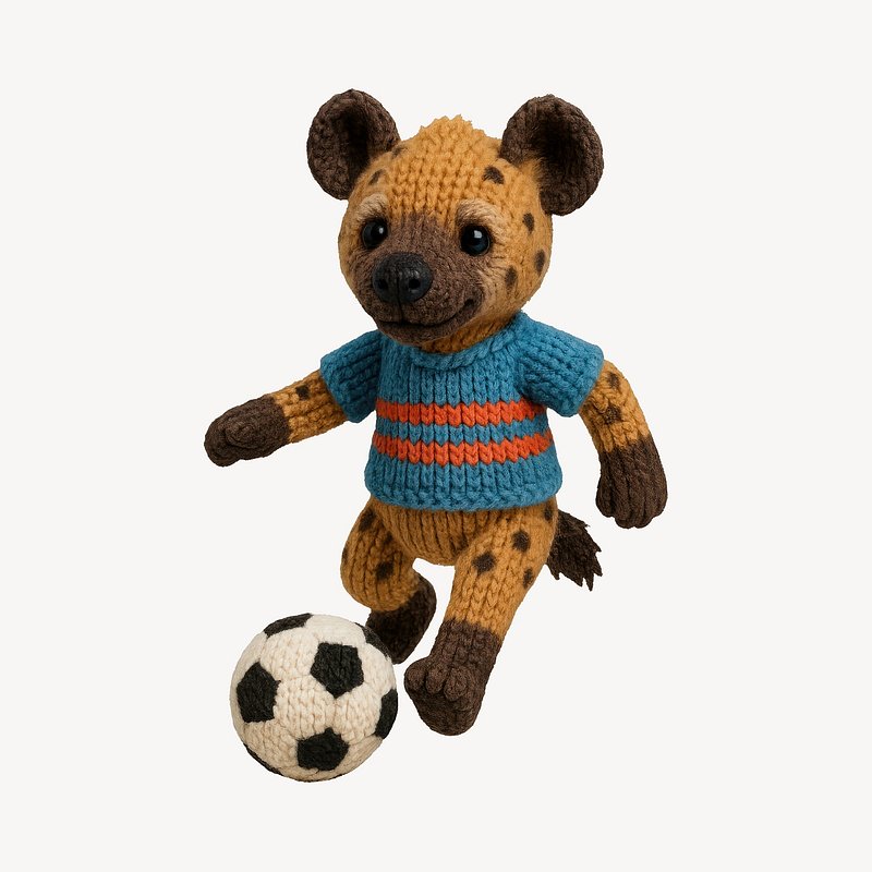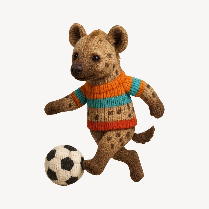 Knitted hyena playing soccer https://www.rawpixel.com/image/24656203/knitted-hyena-playing-soccerView license