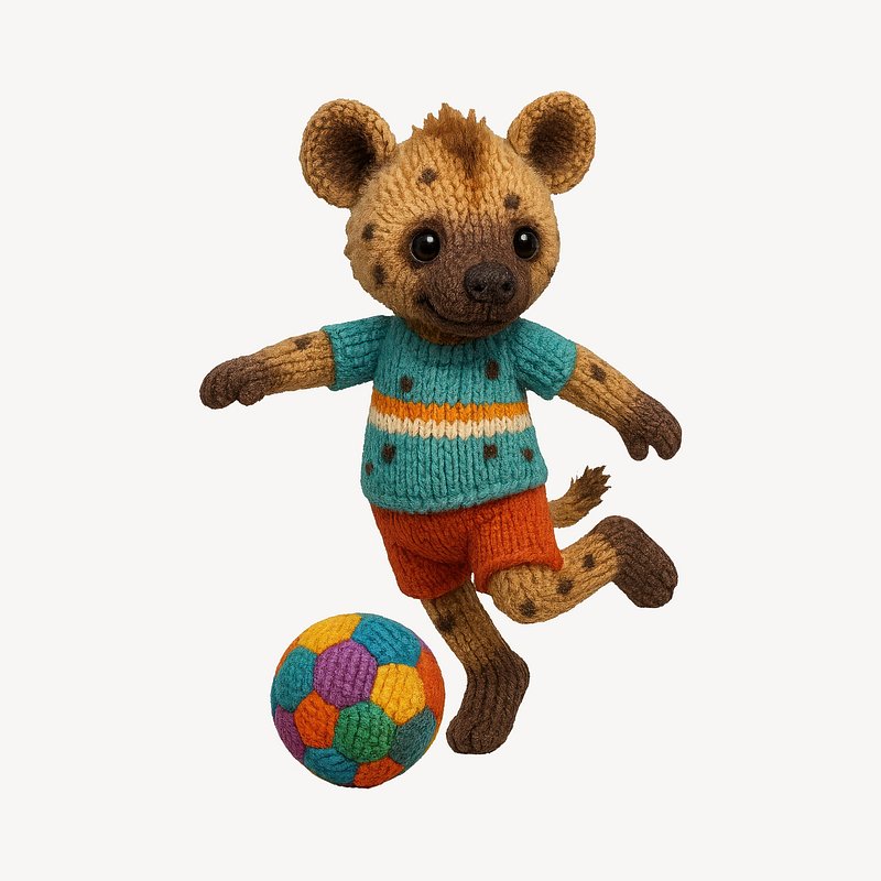 PNG Knitted hyena playing soccer https://www.rawpixel.com/image/24474534/png-knitted-hyena-playing-soccerView license