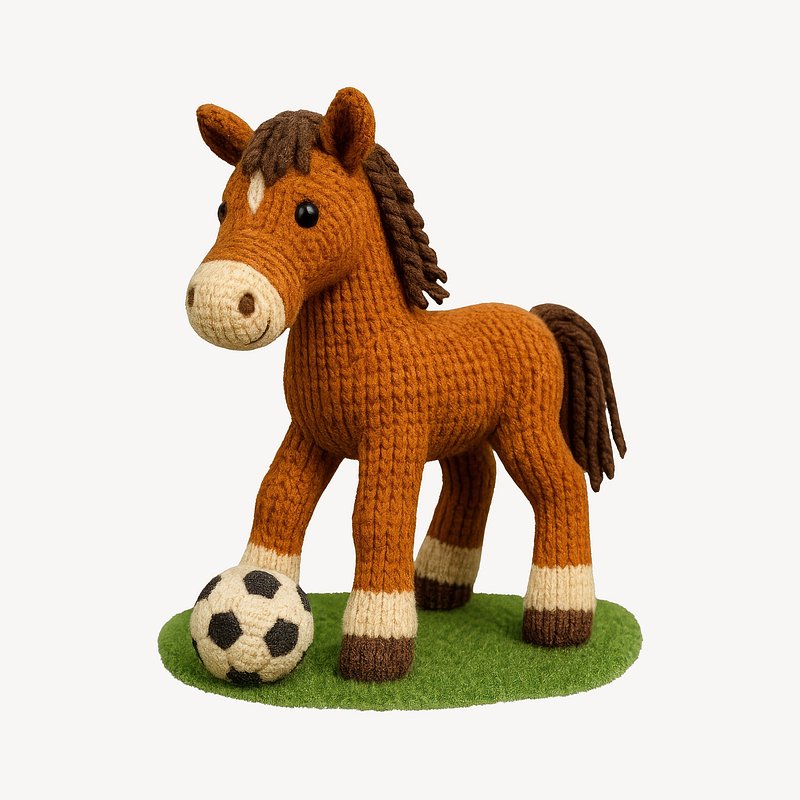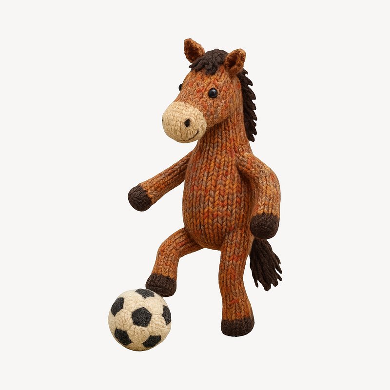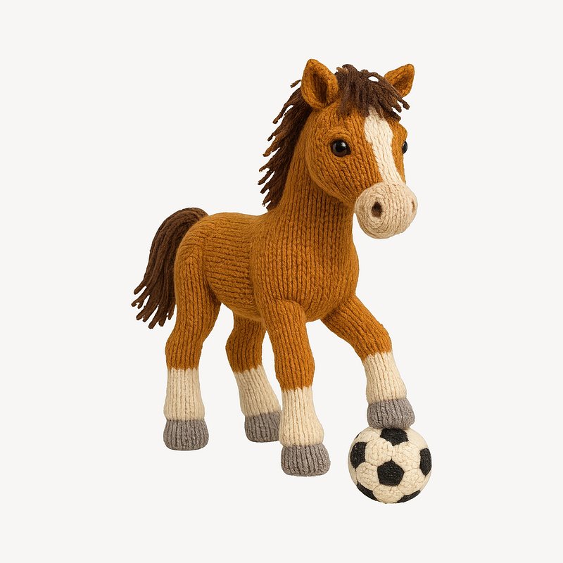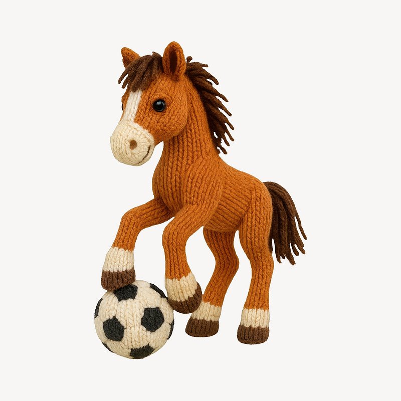 Knitted horse playing soccer. https://www.rawpixel.com/image/24656664/knitted-horse-playing-soccerView license