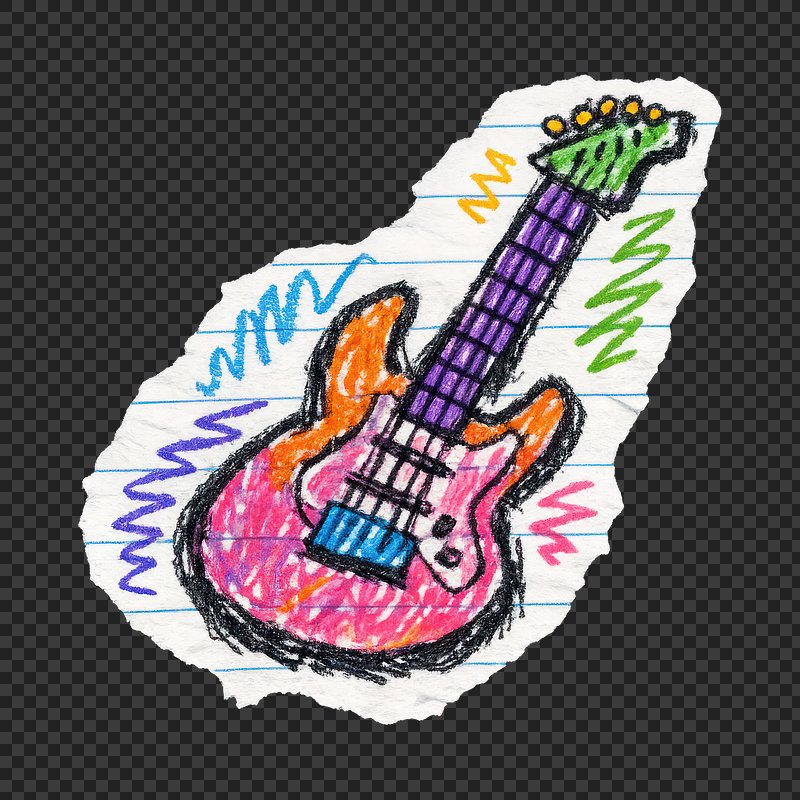 PNG Colorful crayon guitar illustration. https://www.rawpixel.com/image/25609040/png-colorful-crayon-guitar-illustrationView license