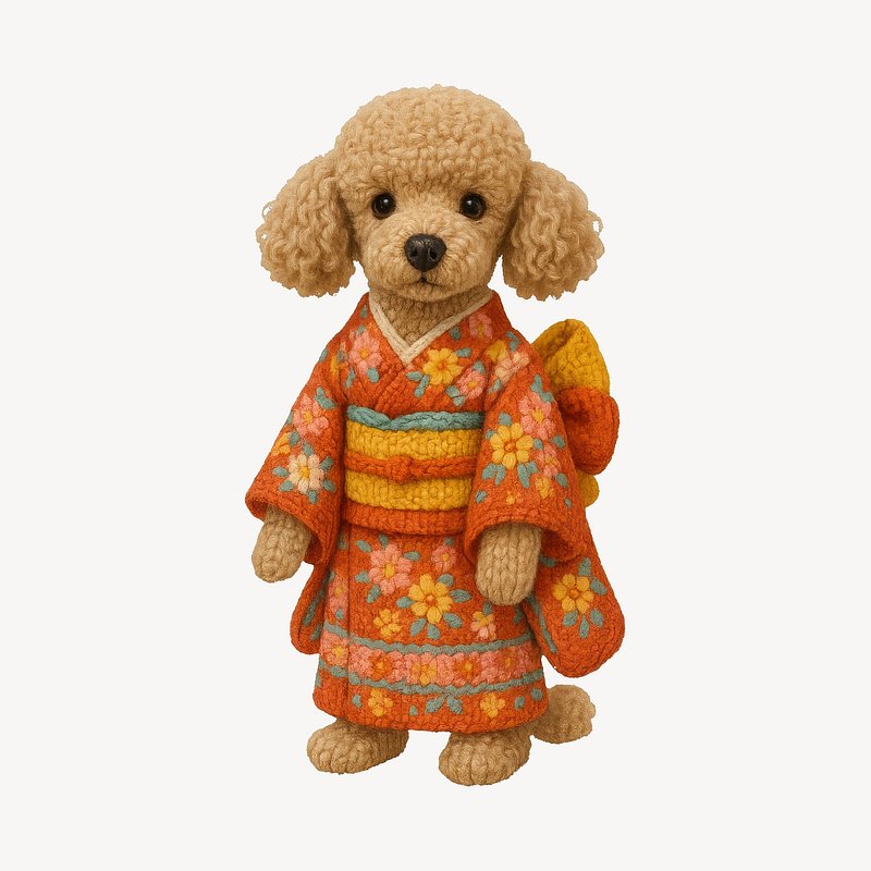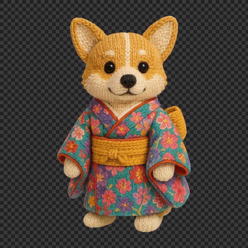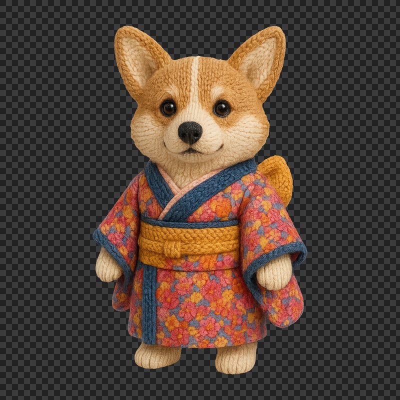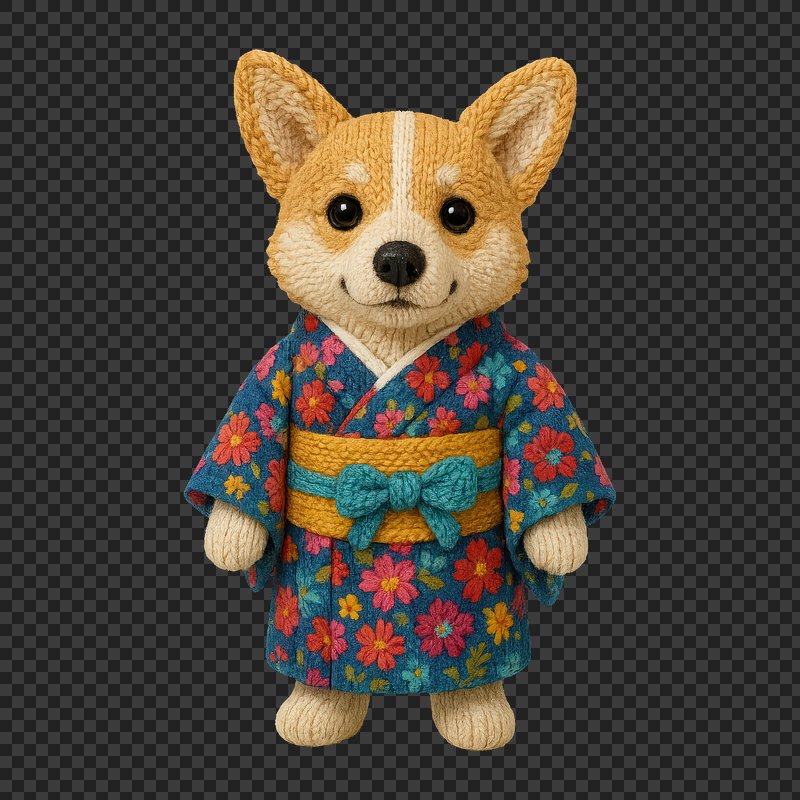 PNG Knitted dog wearing kimono https://www.rawpixel.com/image/24523203/png-knitted-dog-wearing-kimonoView license