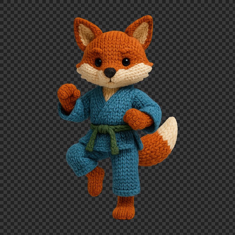 PNG Knitted fox practicing martial arts. https://www.rawpixel.com/image/24443398/png-knitted-fox-practicing-martial-artsView license