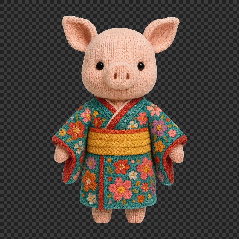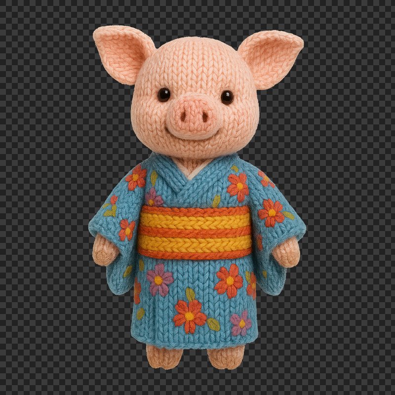 PNG Cute knitted pig in kimono https://www.rawpixel.com/image/24521887/png-cute-knitted-pig-kimonoView license