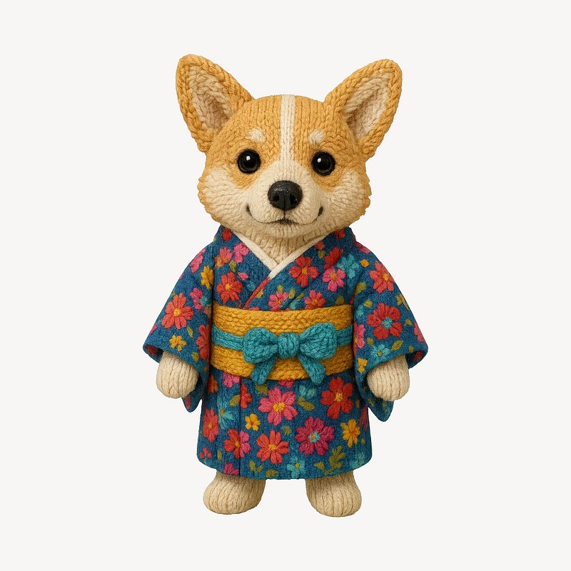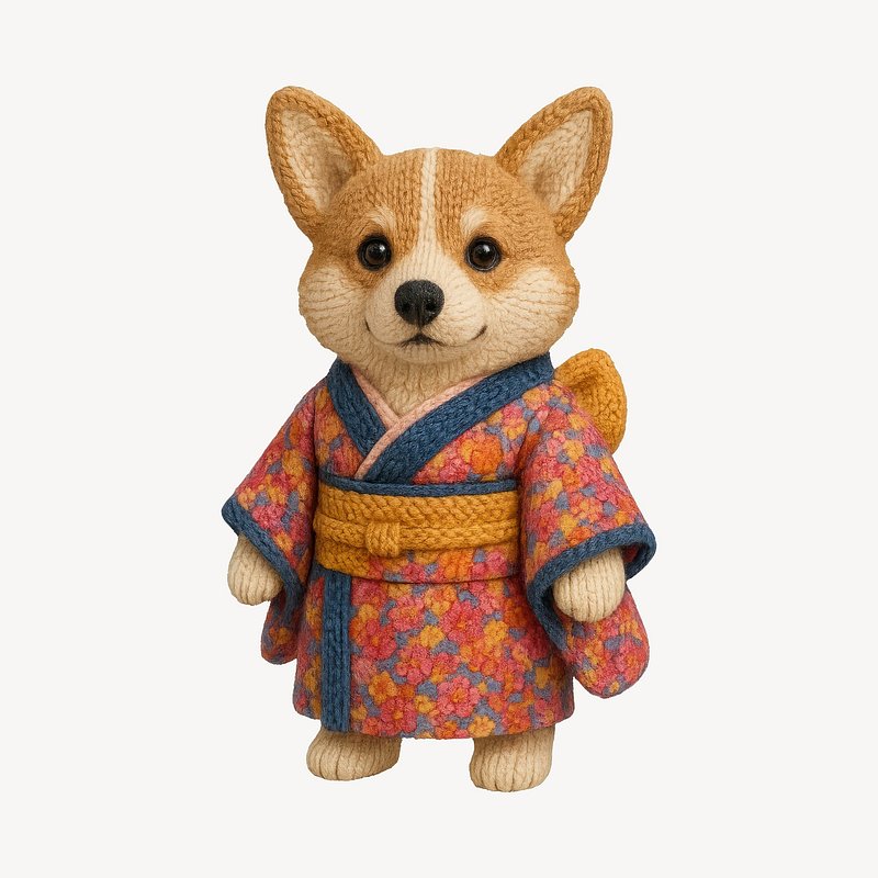Knitted dog wearing kimono https://www.rawpixel.com/image/24608232/knitted-dog-wearing-kimonoView license