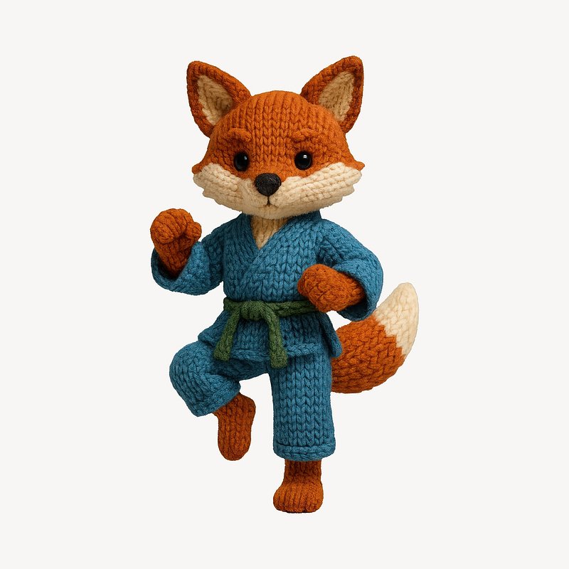 Knitted fox practicing martial arts. https://www.rawpixel.com/image/24530867/knitted-fox-practicing-martial-artsView license