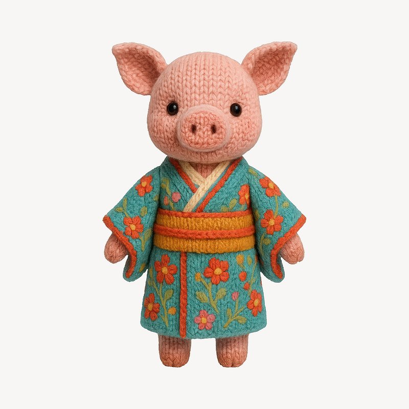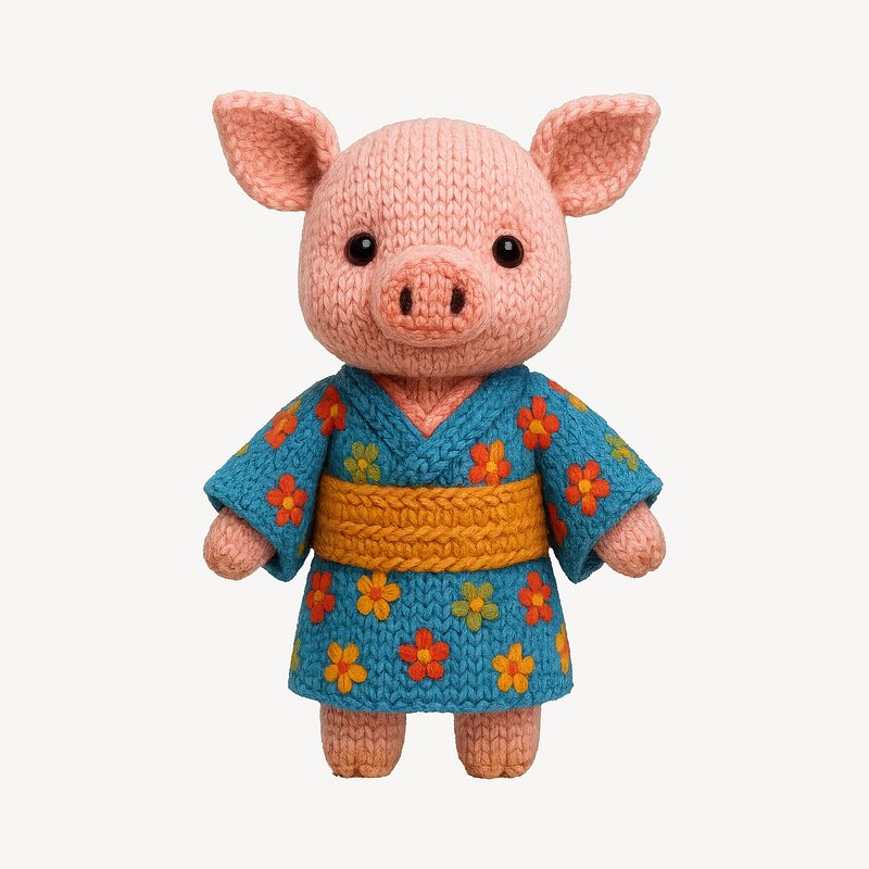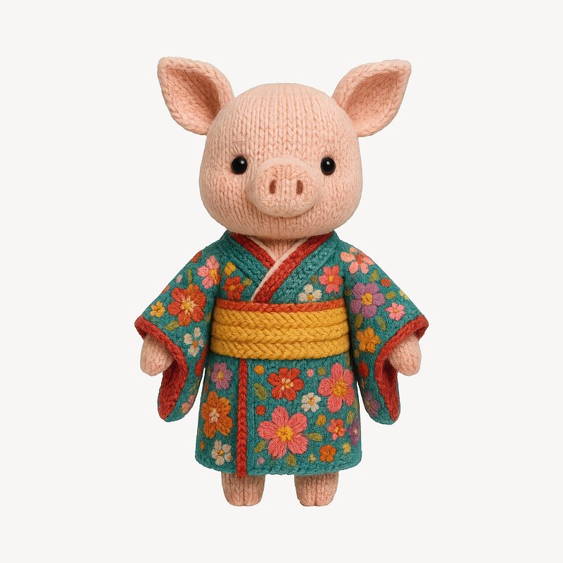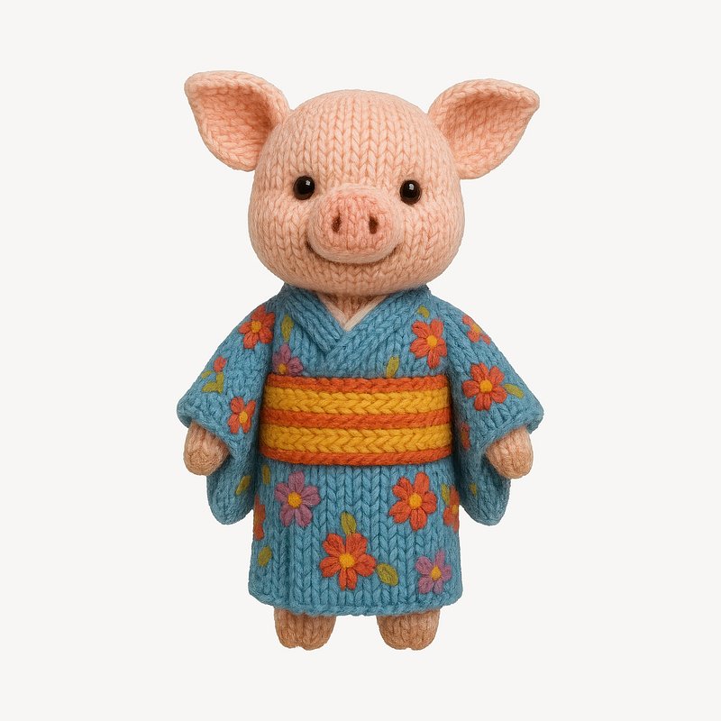 Cute knitted pig in kimono https://www.rawpixel.com/image/24604568/cute-knitted-pig-kimonoView license