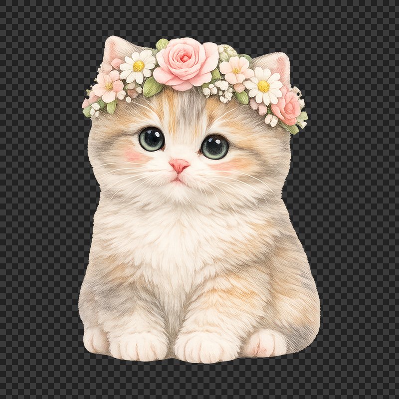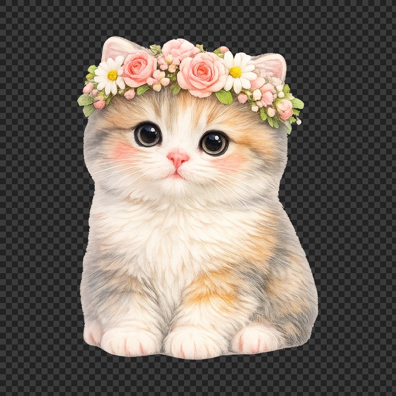 PNG Adorable kitten with floral crown. https://www.rawpixel.com/image/25247953/png-adorable-kitten-with-floral-crownView license
