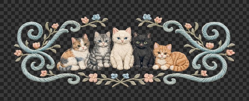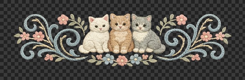 PNG Charming embroidered kittens illustration. https://www.rawpixel.com/image/25585841/png-charming-embroidered-kittens-illustrationView license
