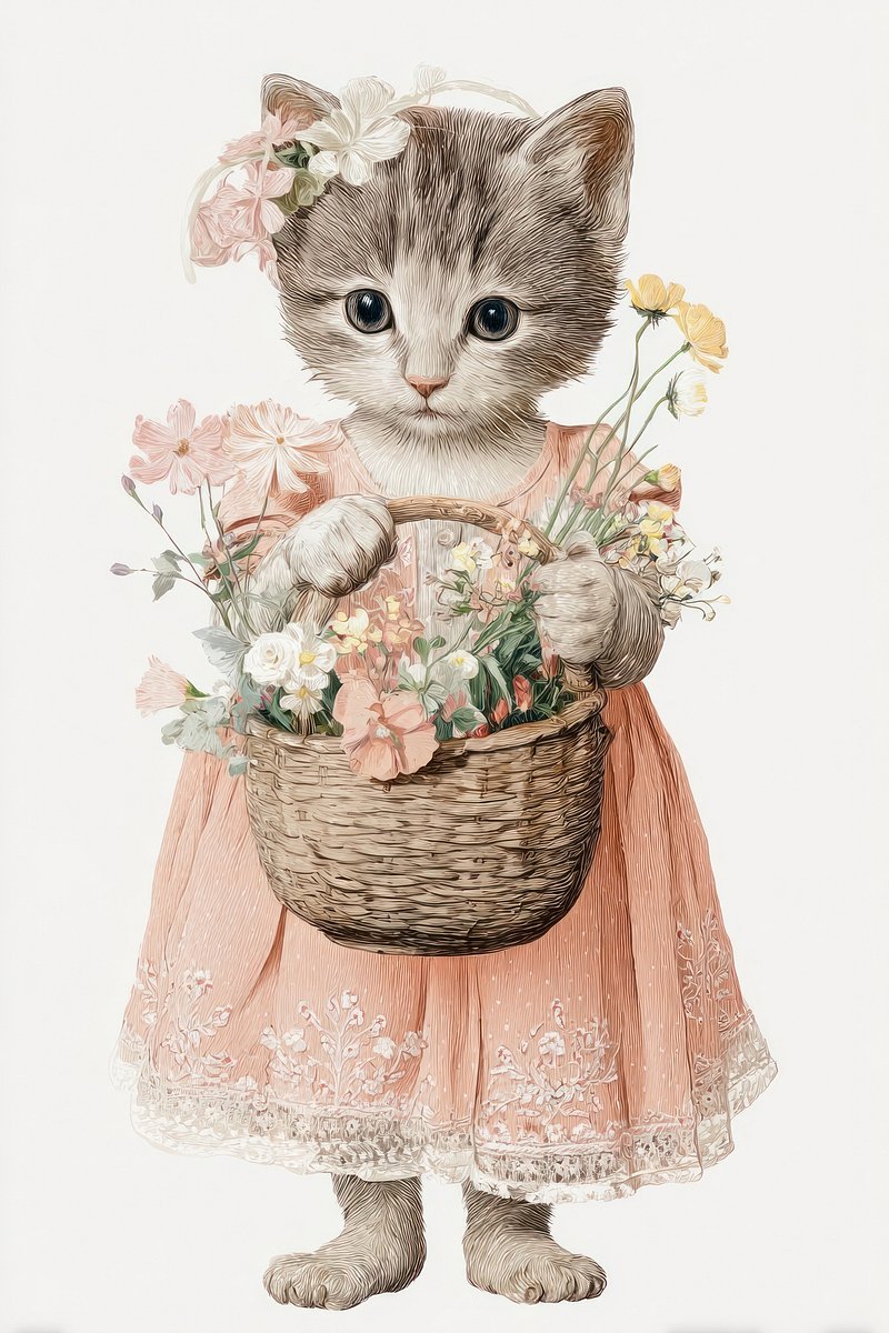 Charming kitten holding flowers. https://www.rawpixel.com/image/24890343/charming-kitten-holding-flowersView license