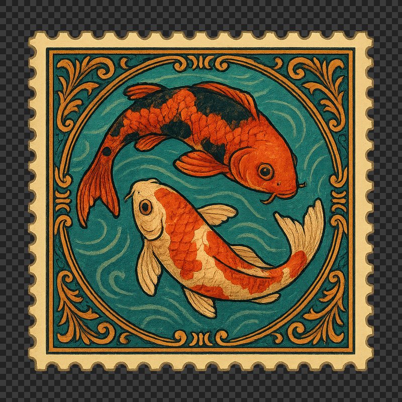 PNG Vintage koi fish stamp illustration. https://www.rawpixel.com/image/18192272/png-vintage-koi-fish-stamp-illustrationView license