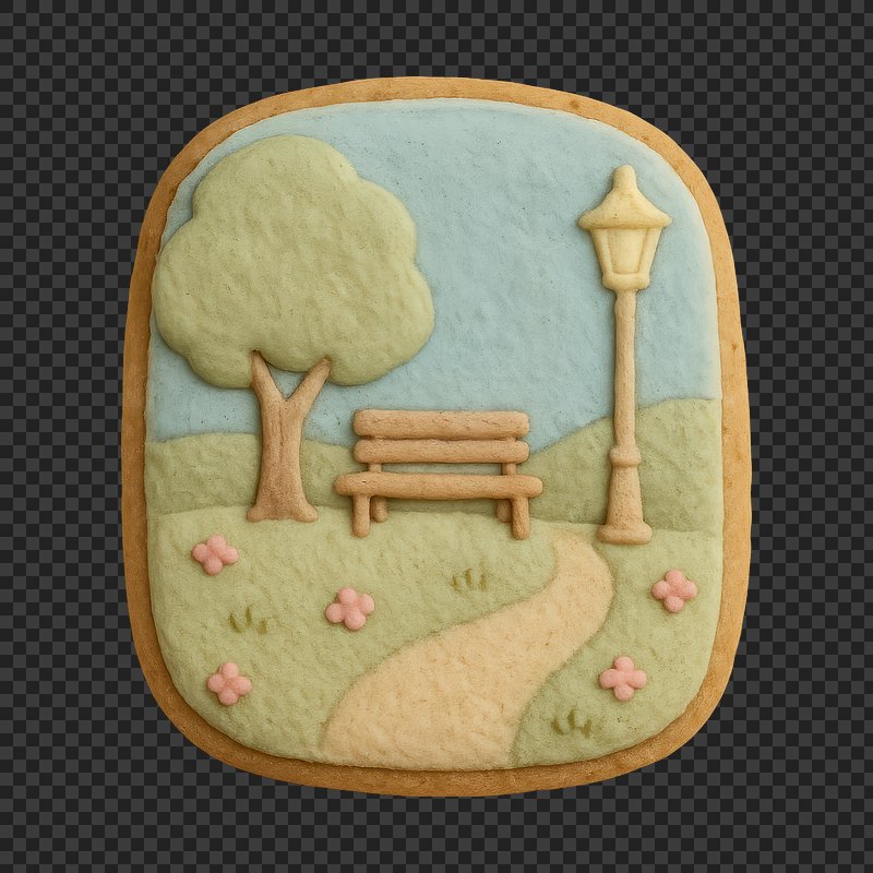 PNG Whimsical park scene cookie https://www.rawpixel.com/image/24670454/png-whimsical-park-scene-cookieView license