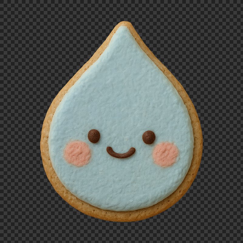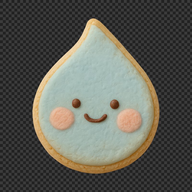 PNG Cute water droplet cookie design. https://www.rawpixel.com/image/24679321/png-cute-water-droplet-cookie-designView license