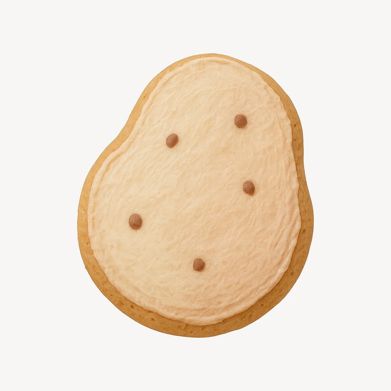Potato-shaped cookie with icing. https://www.rawpixel.com/image/24775489/potato-shaped-cookie-with-icingView license