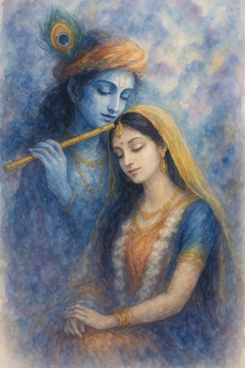 Radha and Krishna Walk in a Flowering Grove (recto); Krishna Fluting (verso) by The Kota Master https://www.rawpixel.com/image/9186002/image-radha-krishna-indiaFree Image from public domain license