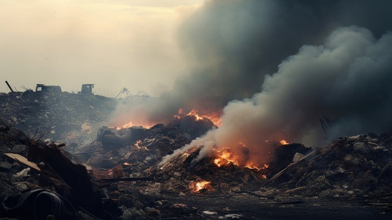 Landfill smoke fire destruction. https://www.rawpixel.com/image/12591047/landfill-smoke-fire-destruction-generated-image-rawpixelView license