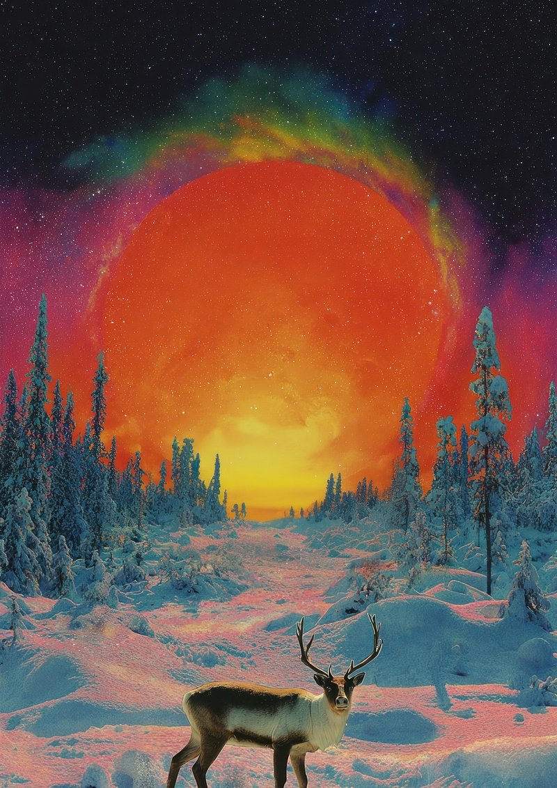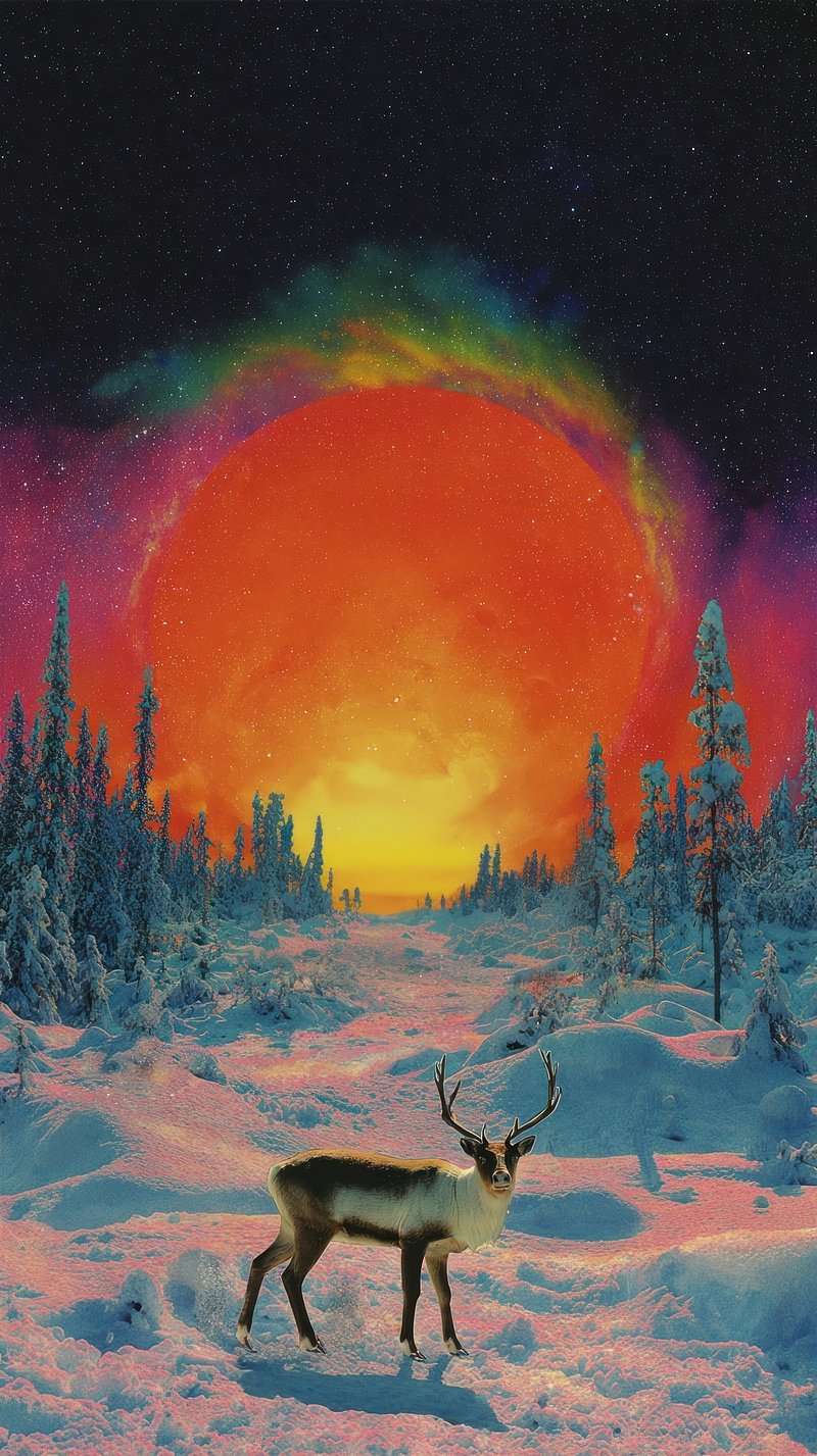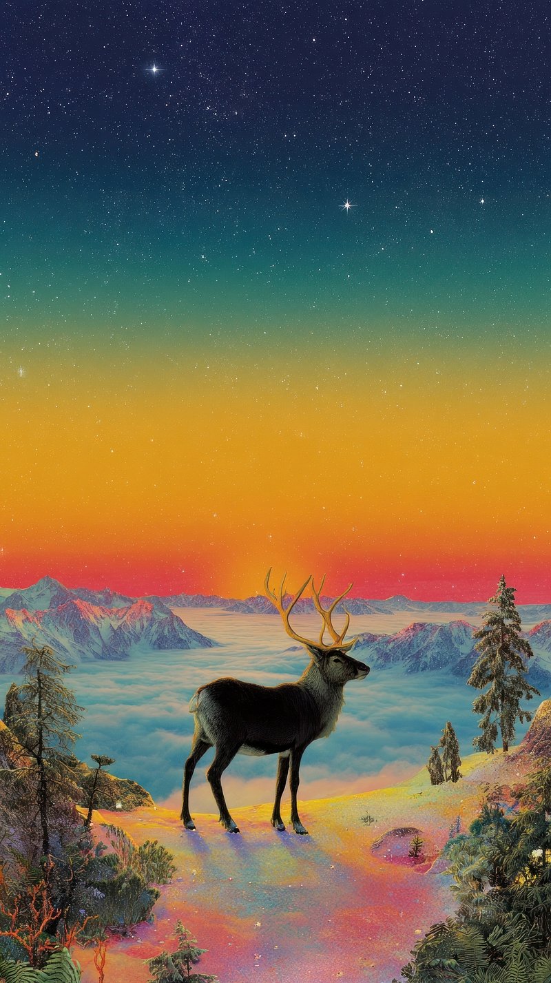 Surreal reindeer under cosmic sky mobile wallpaper https://www.rawpixel.com/image/25777966/surreal-reindeer-under-cosmic-sky-mobile-wallpaperView license