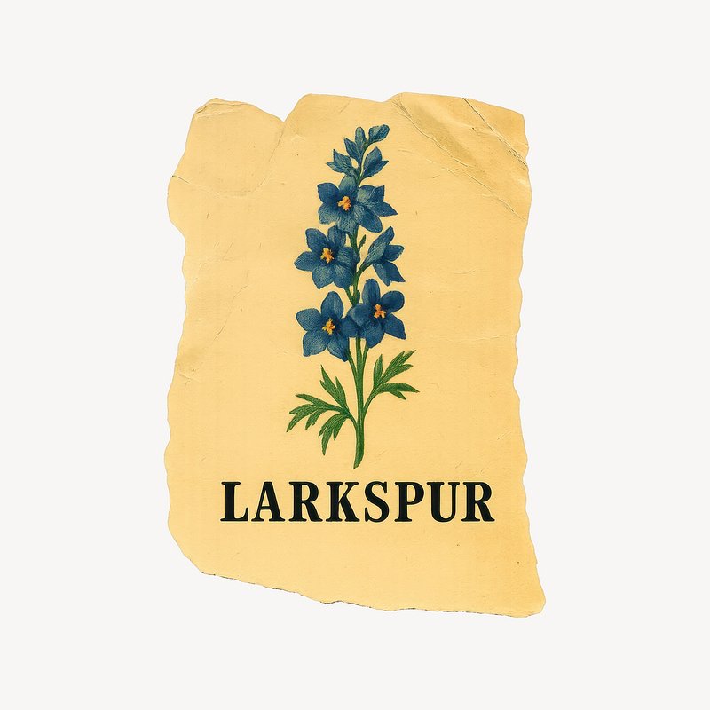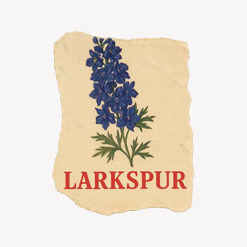 Larkspur flower illustration botanical. https://www.rawpixel.com/image/17419809/larkspur-flower-illustration-botanicalView license