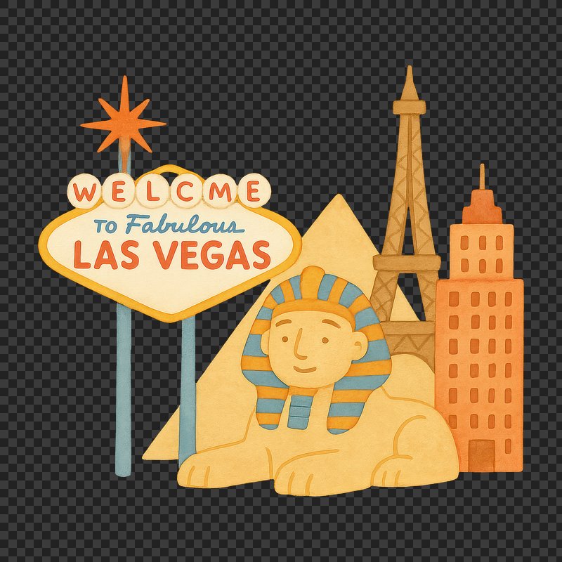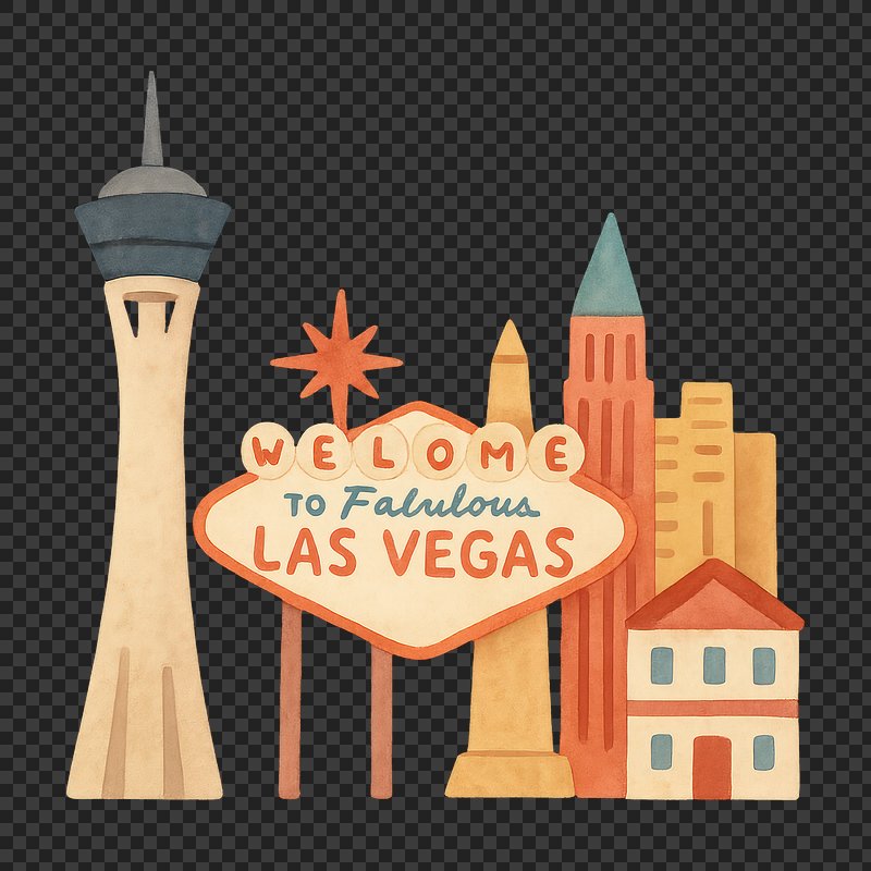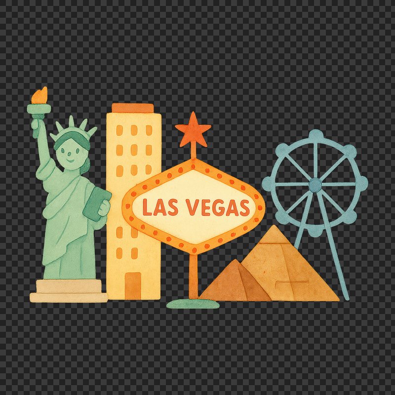 PNG Las Vegas iconic landmarks illustration. https://www.rawpixel.com/image/18685377/png-las-vegas-iconic-landmarks-illustrationView license