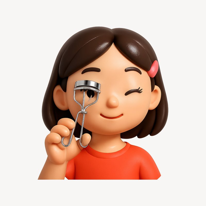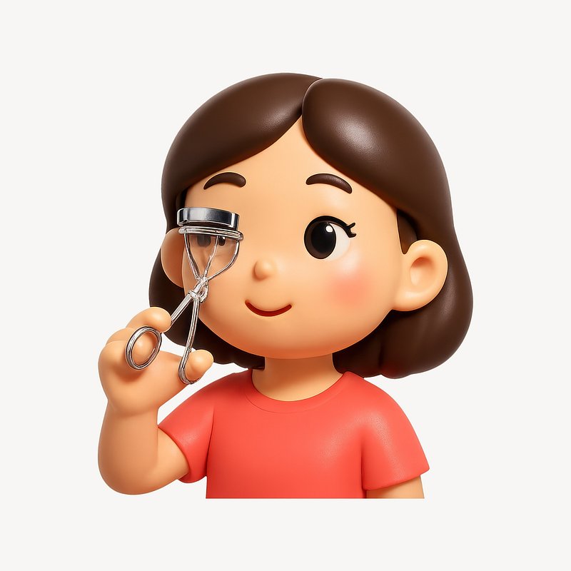 Cute cartoon girl using eyelash curler. https://www.rawpixel.com/image/21164205/cute-cartoon-girl-using-eyelash-curlerView license