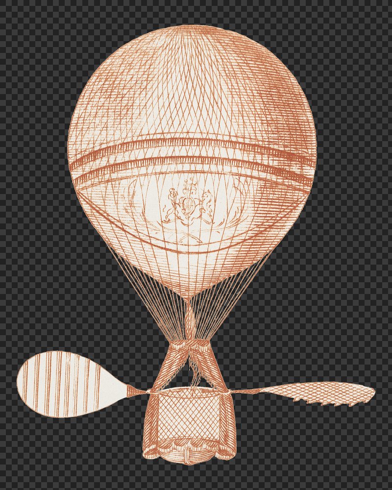 Hot air balloon png, vintage illustration by Vincent Lunardi, transparent background. Remixed by rawpixel. https://www.rawpixel.com/image/9638147/png-art-vintageView license