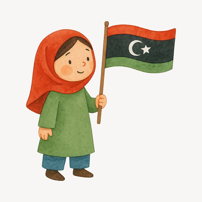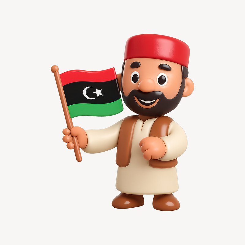 Cartoon character holding Libyan flag. https://www.rawpixel.com/image/21235716/cartoon-character-holding-libyan-flagView license