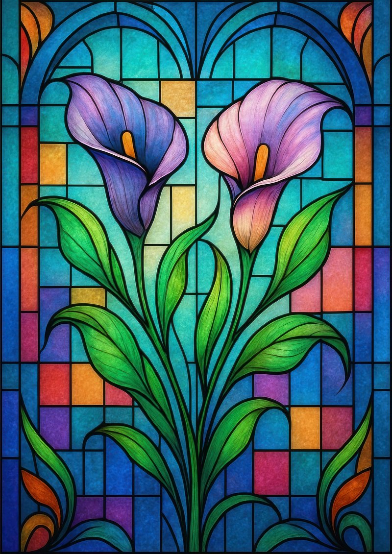 Vibrant floral stained glass art. https://www.rawpixel.com/image/21298285/vibrant-floral-stained-glass-artView license