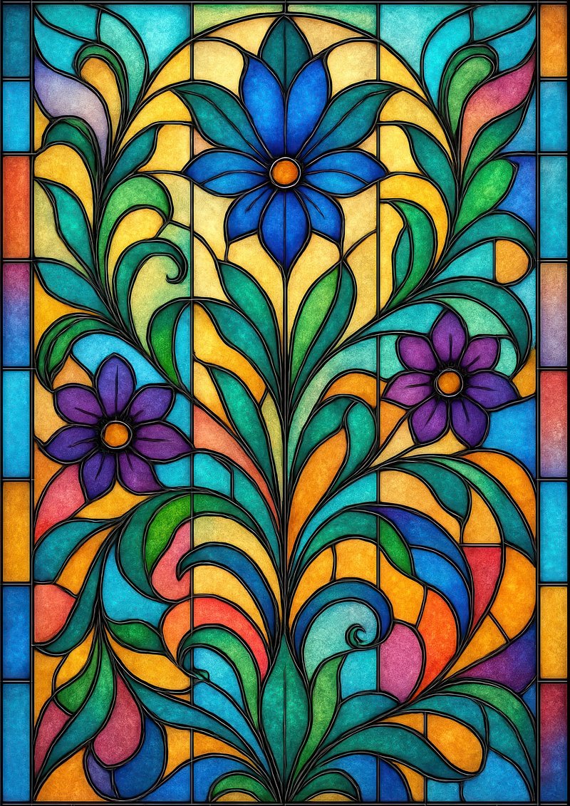 Vibrant floral stained glass design https://www.rawpixel.com/image/21306727/vibrant-floral-stained-glass-designView license