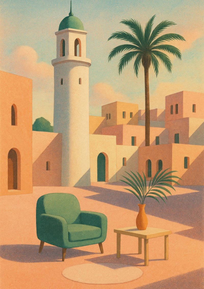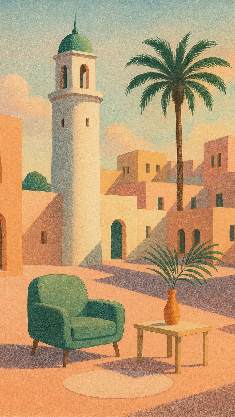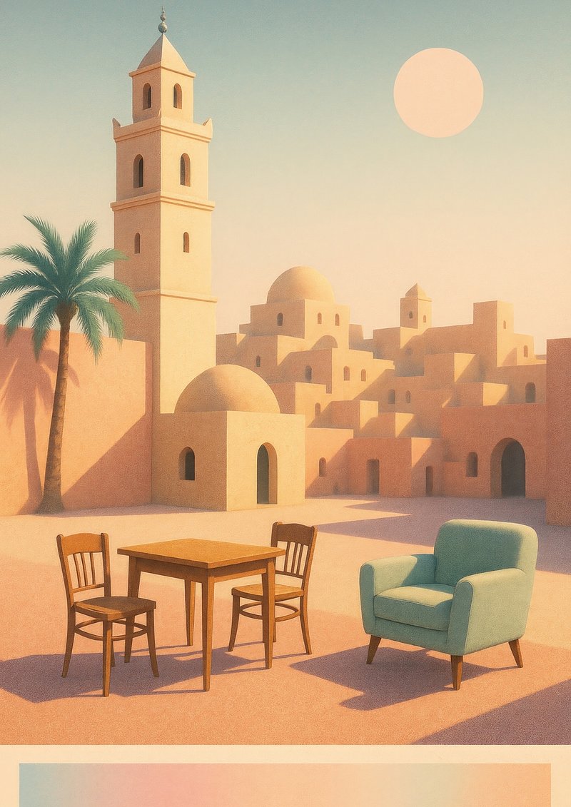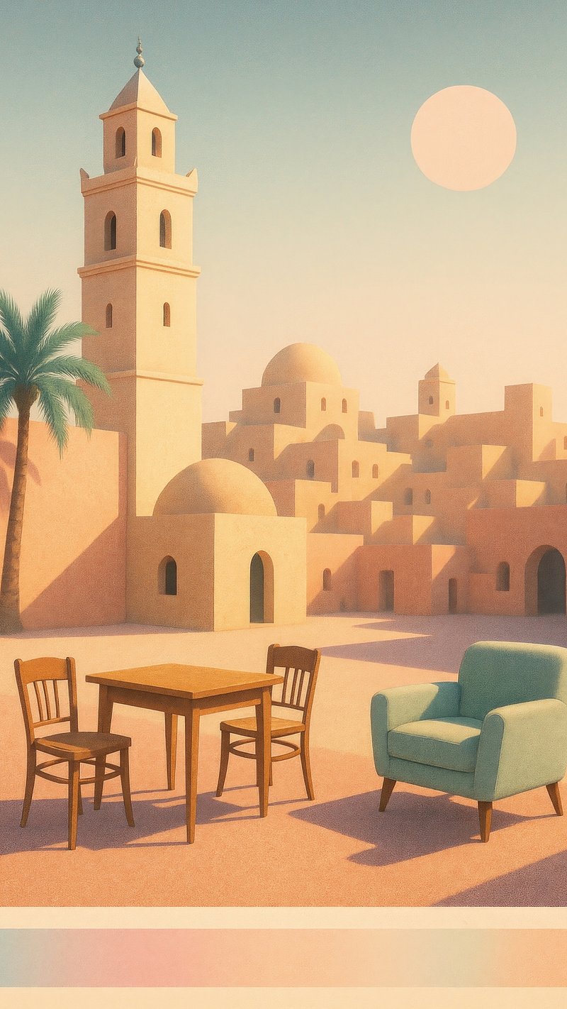 Serene desert townscape illustration. https://www.rawpixel.com/image/22898442/serene-desert-townscape-illustrationView license