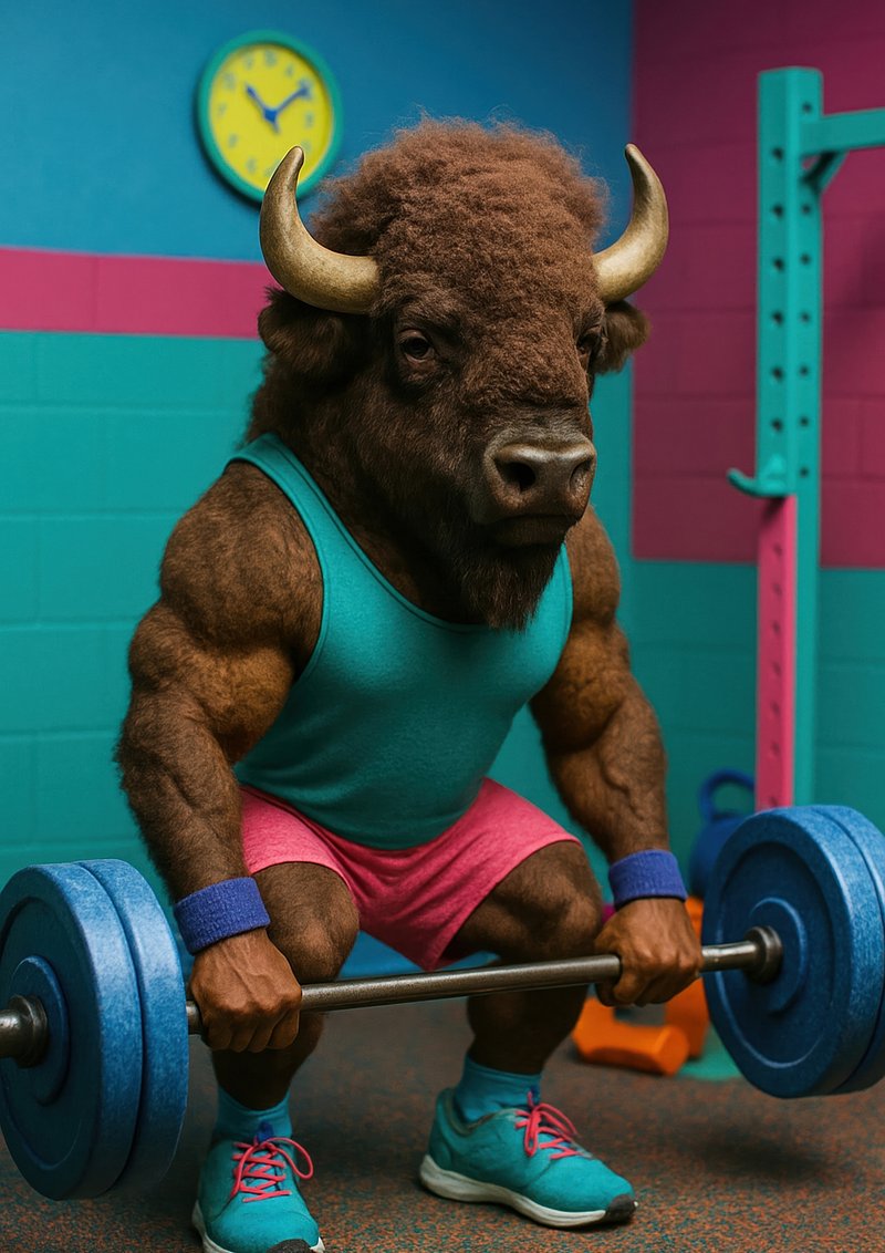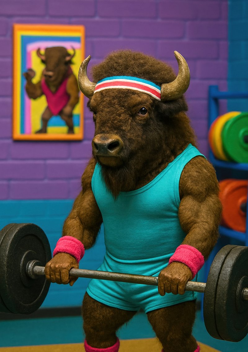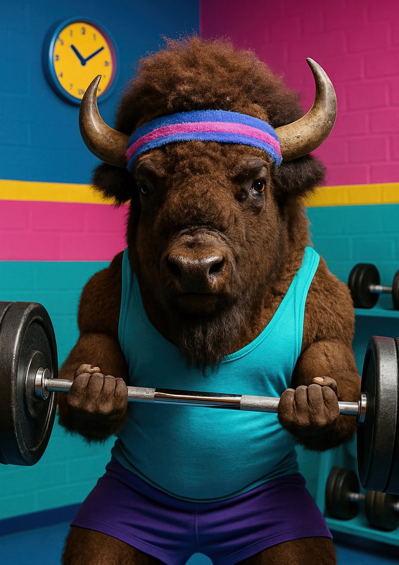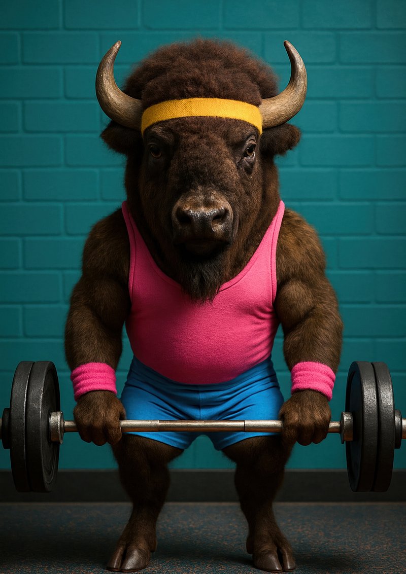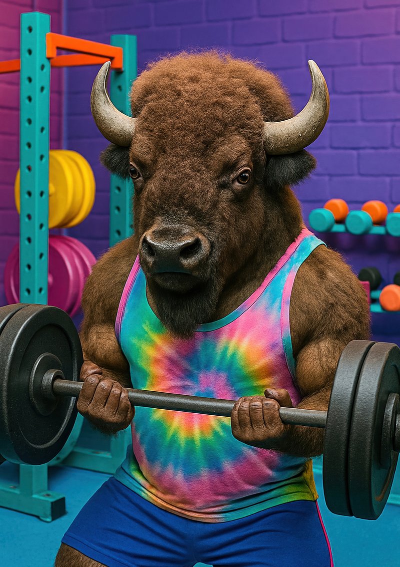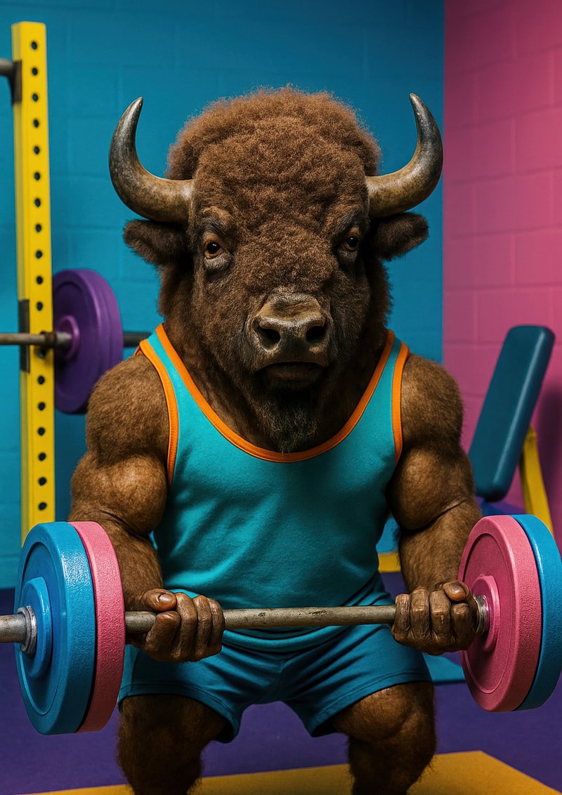 Bison lifting weights vibrantly. https://www.rawpixel.com/image/18105247/bison-lifting-weights-vibrantlyView license