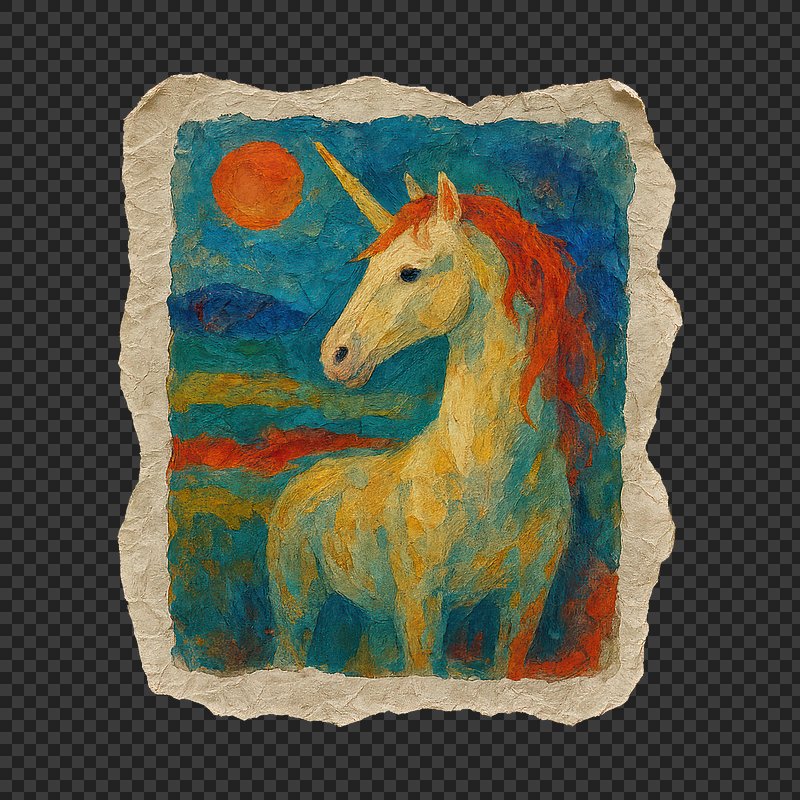 PNG Vibrant unicorn painting on canvas. https://www.rawpixel.com/image/24066491/png-vibrant-unicorn-painting-canvasView license