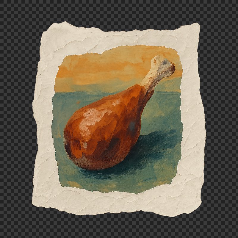 PNG Rustic painting of chicken drumstick. https://www.rawpixel.com/image/24122432/png-rustic-painting-chicken-drumstickView license