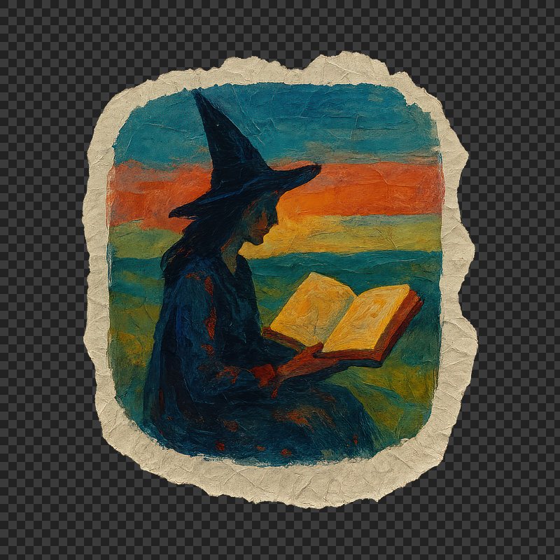 PNG Mystical witch reading at sunset. https://www.rawpixel.com/image/24121981/png-mystical-witch-reading-sunsetView license