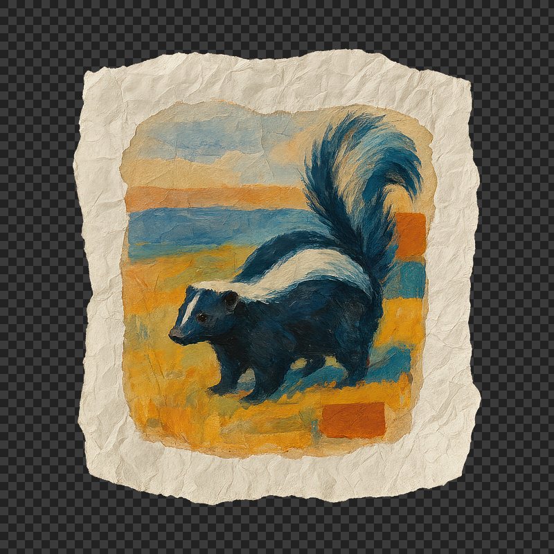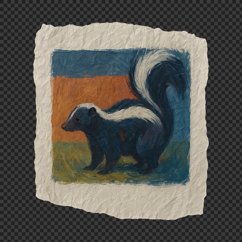 PNG Colorful skunk painting on paper. https://www.rawpixel.com/image/24117390/png-colorful-skunk-painting-paperView license