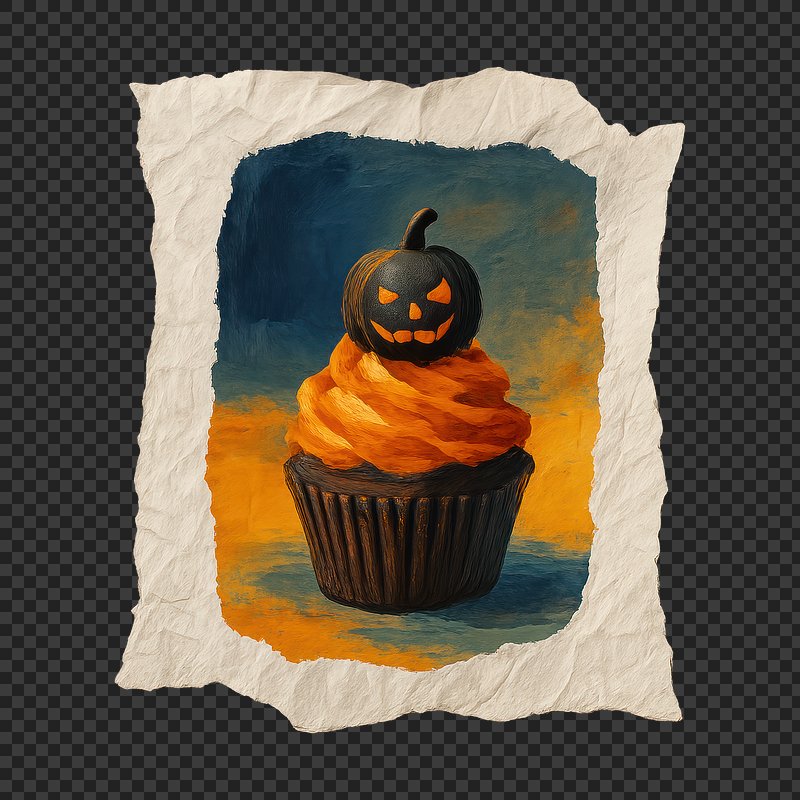 PNG Halloween cupcake with pumpkin topper. https://www.rawpixel.com/image/24117446/png-halloween-cupcake-with-pumpkin-topperView license