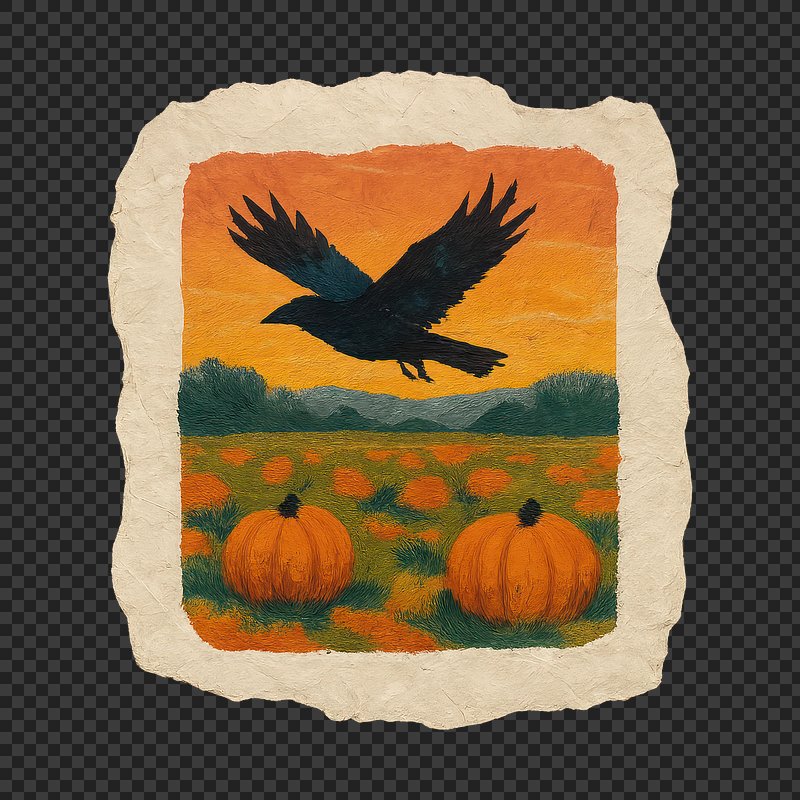 PNG Crow flying over pumpkin field. https://www.rawpixel.com/image/24116805/png-crow-flying-over-pumpkin-fieldView license