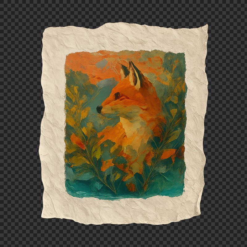 PNG Artistic fox amidst vibrant foliage. https://www.rawpixel.com/image/24119559/png-artistic-fox-amidst-vibrant-foliageView license
