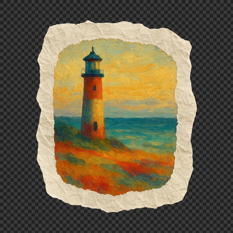 PNG Vibrant lighthouse painting on canvas. https://www.rawpixel.com/image/24120519/png-vibrant-lighthouse-painting-canvasView license