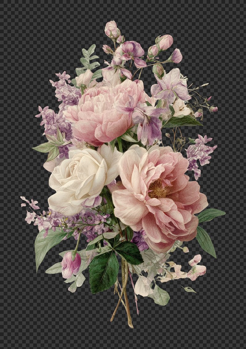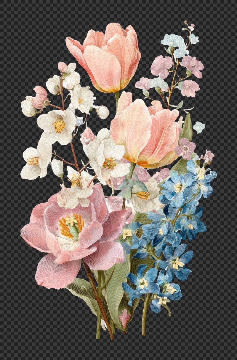 PNG Vintage floral bouquet illustration https://www.rawpixel.com/image/24922522/png-vintage-floral-bouquet-illustrationView license