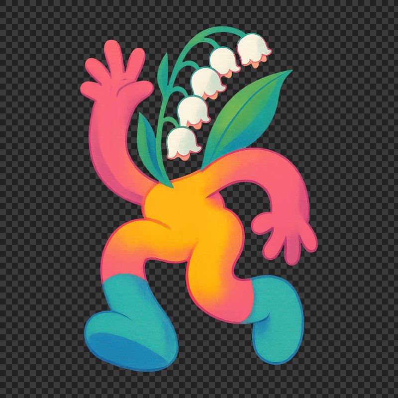 PNG Whimsical floral character illustration. https://www.rawpixel.com/image/21879487/png-whimsical-floral-character-illustrationView license