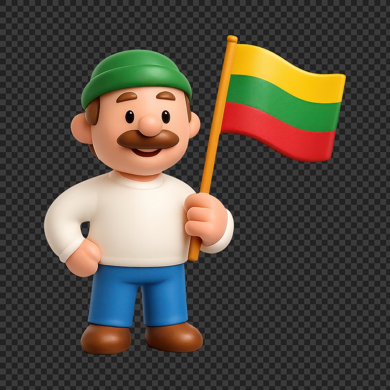 PNG Cartoon character holding Lithuanian flag. https://www.rawpixel.com/image/20583097/png-cartoon-character-holding-lithuanian-flagView license