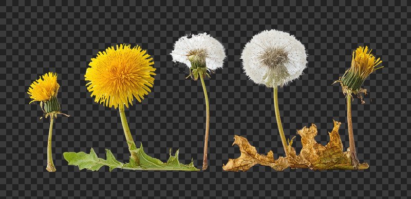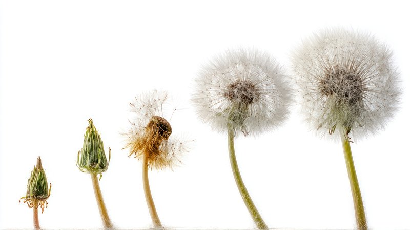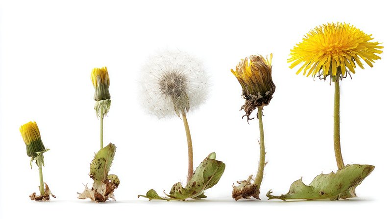 Dandelion life cycle stages. https://www.rawpixel.com/image/25040519/dandelion-life-cycle-stagesView license