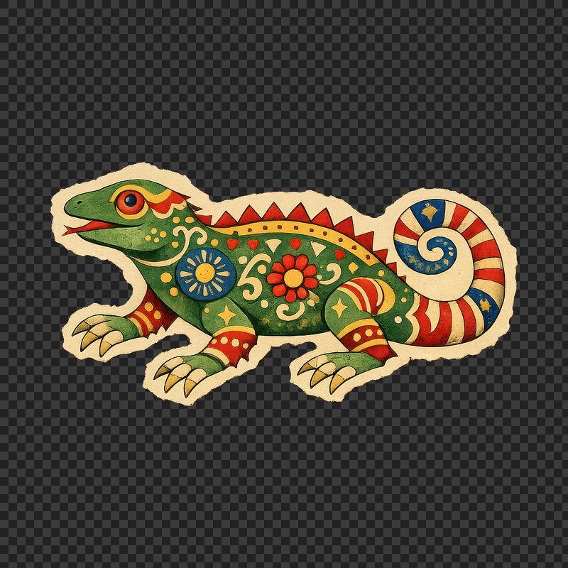 PNG Colorful folk art lizard illustration. https://www.rawpixel.com/image/25251208/png-colorful-folk-art-lizard-illustrationView license