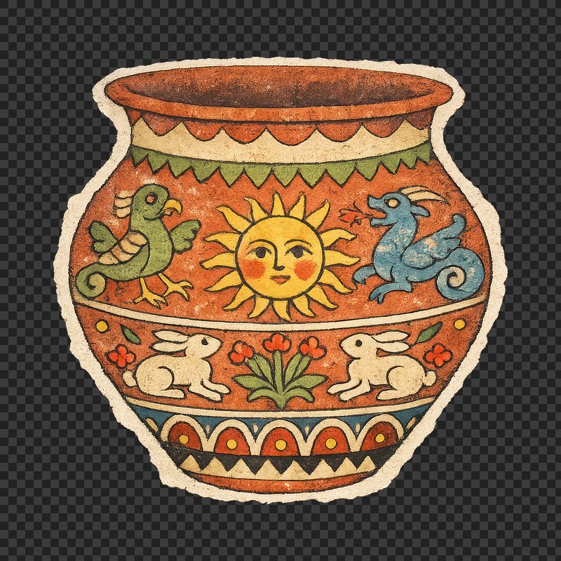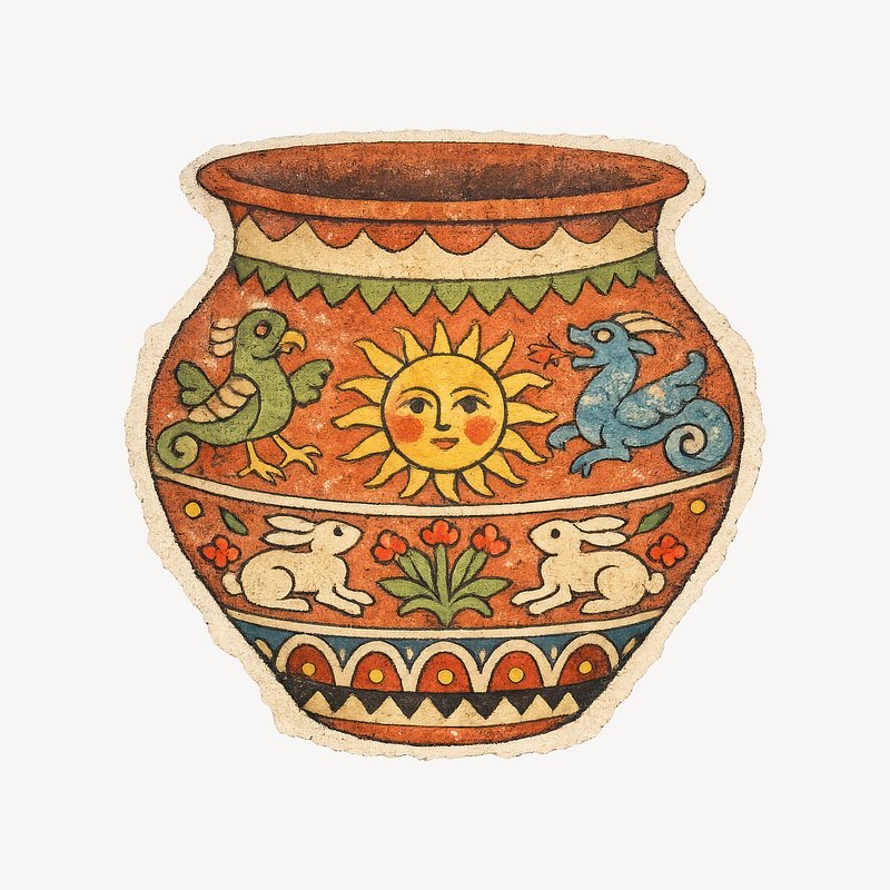 PNG Colorful folk art pottery design. https://www.rawpixel.com/image/25422278/png-colorful-folk-art-pottery-designView license