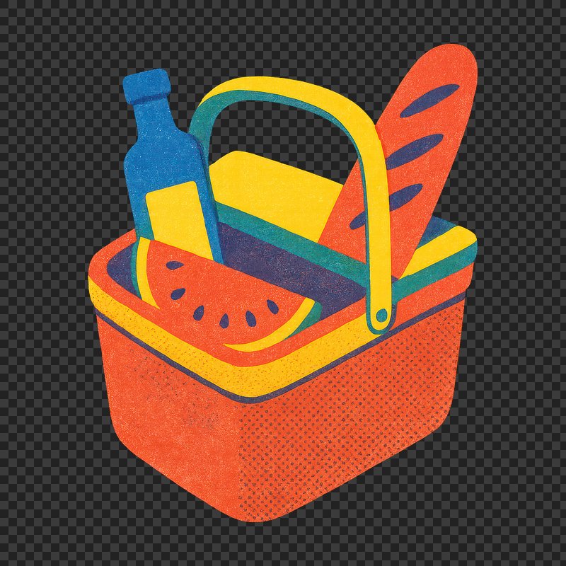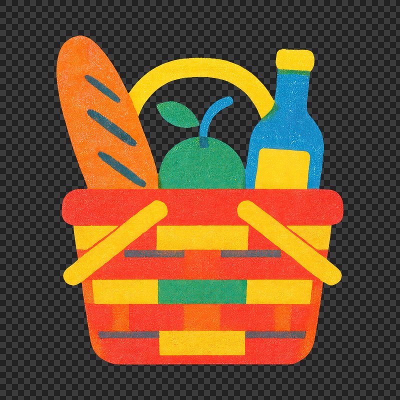 PNG Colorful picnic basket illustration. https://www.rawpixel.com/image/21805439/png-colorful-picnic-basket-illustrationView license