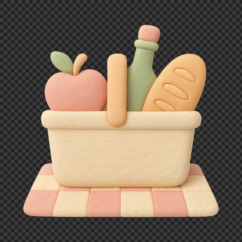 PNG Clay picnic basket with food. https://www.rawpixel.com/image/21449644/png-clay-picnic-basket-with-foodView license