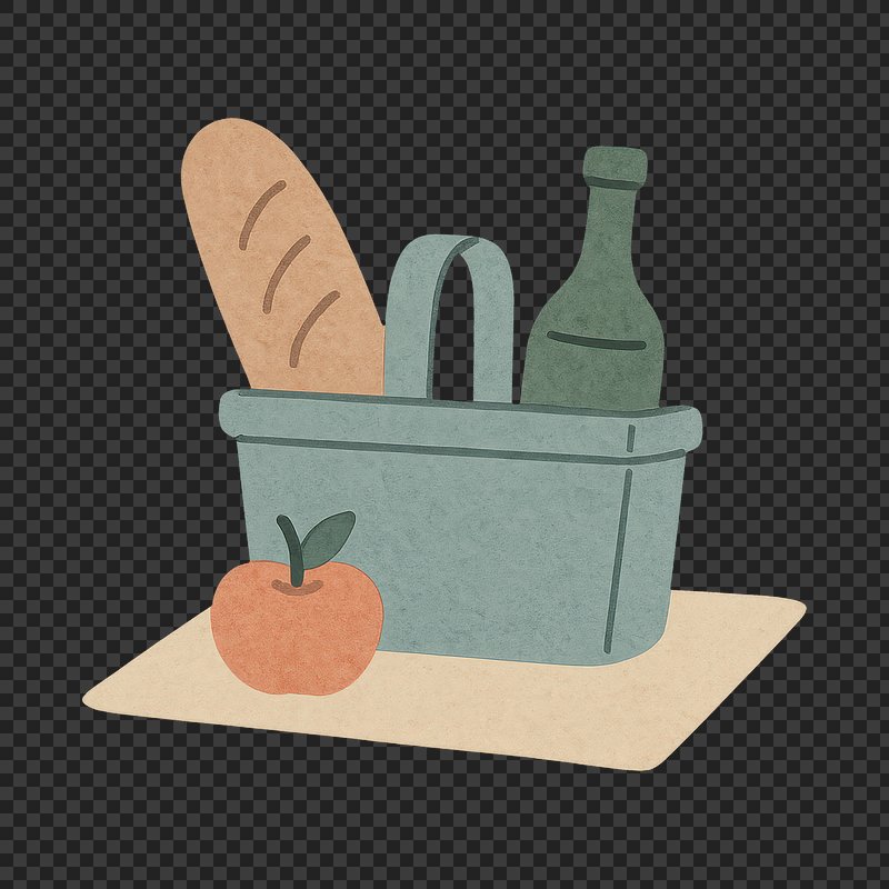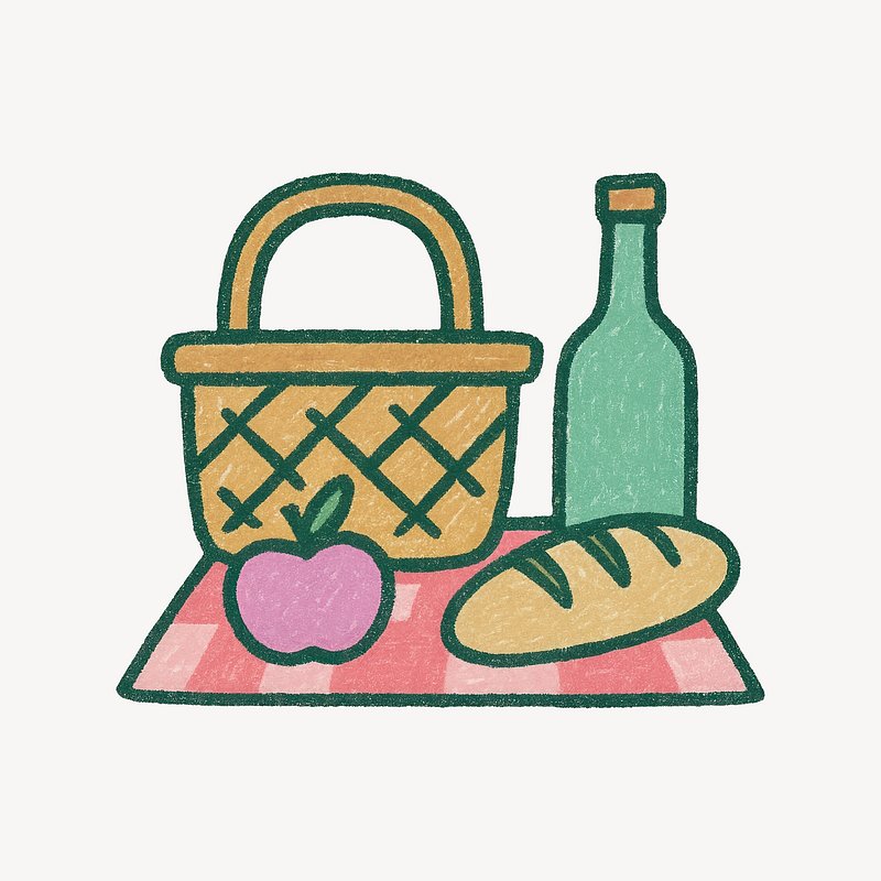PNG Picnic basket with food illustration. https://www.rawpixel.com/image/22407344/png-picnic-basket-with-food-illustrationView license